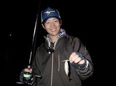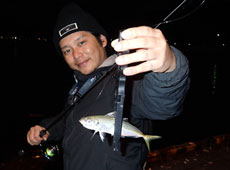 今回、トミーさんの釣行に同行している札幌の釣具店”ノースキャスト”の築田さんは初めてのアジング!トミーさんのアドバイスを受け、人生初アジゲット!