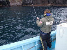 潮が緩くなると反応もまばらに・・・丁寧にボトムを探りつつ大橋さんにサイズアップのアブラコ(アイナメ)がヒット!