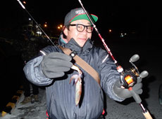 仕事終わりのエギング釣行!雪が降って、道路はツルツル(^o^;) そんな中でもイカが釣りたいメンバーで出かけてきました。