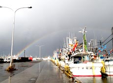 雨が上がり虹が!!ここで自分にも待望のアブラコ(アイナメ)がヒット!エコギア・バグアンツ2インチの18gフリリグ!