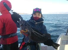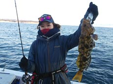 本日は魚の活性が高く、クロソイ&アブラコ(アイナメ)のヒットが続く中、斉藤さんに良型と思われる魚がヒット!ロッドがバットから曲がり大物の予感!?慎重にやり取りしキャッチしたのは48 cm の大物クロソイ!
