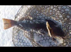 ここでシンカーを14 g にウェイトアップ、メリハリのきいたアクションで狙ってみると「ゴンッ」と冬の魚にしてはナイスな反応! 3匹目も同サイズ!