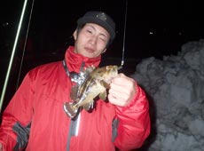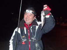 斉藤さんにもガヤがヒット!小さいあたりに苦戦しながらも、気がつくと隣でロッドが曲がっている!(笑)連続でヒットさせていました!風と小雨の中、お付き合い頂きありがとうございました!