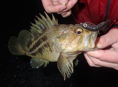 この日は軽いリグでフワっとした釣りをするとガヤがヒットし、テキサスリグでボトムをしっかり誘うとクロソイやシマゾイが釣れる印象でした。