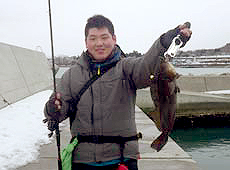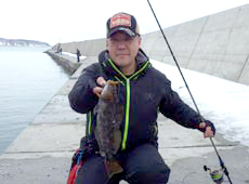 三宮さんはリグを繊細に操りアブラコ ( アイナメ ) キャッチ!