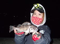 続いて「釣れました〜」と斉藤さんの声!クロソイヒット!