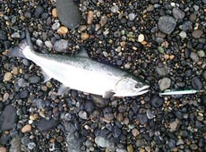 春のハイシーズン間近!?上ノ国方面でサクラマスを狙いました! 夜明けとともにサーフに入釣。事前情報もほとんど無い状況の中で釣り開始。久しぶりの凪ぎの日本海側での釣りにワクワク。