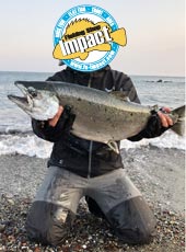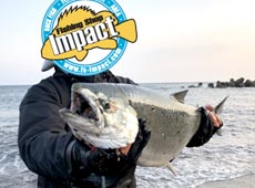 ジャクソン・アスリート14SSをキャストしてリトリ部からの時折トゥイッチ!その2投目でした。トゥイッチからの巻き始めに「ドンッ!」といきなりヒット!52cmのサクラマス。早く結果が出たことに一安心しながらも、今年はもっと大きいサクラマスが釣れていると話を聞いていたので、さらなるサイズアップを目指してキャストを再開!すると間もなくして再びヒット!上がってきたのは念願の60cm!更にヒットは続き62cm!・・・あまりに出来過ぎの展開!しかしこれでは終わらなかったのです。