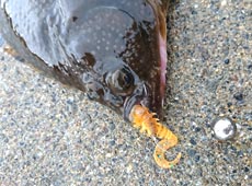 前日にワームでカレイが釣れる話を聞いたばかり!なんとタイムリーな釣果!帰省中に一ネタ出来ました〜♪(笑)