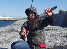 外崎さんもヘチ際狙いでアブラコ ( アイナメ ) ゲット!