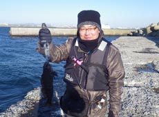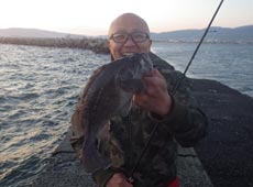 テトラ際を丹念に探っていた中山さんが再び40アップのアブラコ ( アイナメ ) キャッチ!