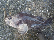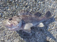 私もヘチ際にライトリグを落とし込み、釣れたのは♂のベロカジカ。