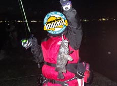 日が暮れてからはソイの反応が徐々に良くなってきました。小澤さんに35 cm ほどのナイスサイズのクロソイがヒット!