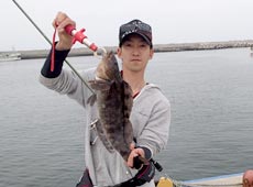 まずは近江さんと合流し、釣りスタート!さっそくアブラコ(アイナメ)がヒット!