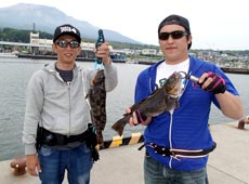 さらに近江さんに46cm&岩藤さんに50cmジャストのアブラコ(アイナメ)がダブルヒット!勢いが止まりません!