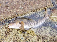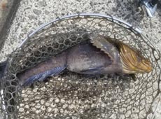 小野君も40アップのアブラコ(アイナメ)をゲット!魚の活性があまり高くないためか、点在する岩の回りでの反応が多いとのこと。