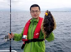 この日は食いが渋いのか!?反応が少なく苦戦。 それでも諦めずキャストを続けていると、たじま君もヒラメをキャッチ!
