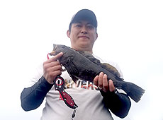 下海岸でアブラコ(アイナメ)を狙いました。 ファーストヒットは中村君。40cmほどのアブラコ(アイナメ)ゲット!