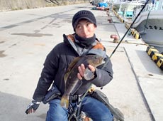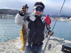 上野さんもコンスタントに釣果を重ねます!サイズアップのアブラコ(アイナメ)!