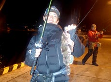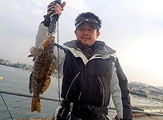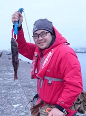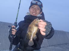 その横であっきーさんにもこの日3本目のアブラコ(アイナメ)がヒット!遠投では反応が無いので、足元付近を探るとバイトが多かったとのこと!