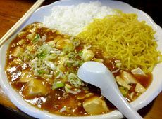 というわけで!お昼休憩へ(笑)今回も”みどりや”さんへ!こちらは”マーボー丼麺”ご飯と麺が半分づつ、それに麻婆豆腐を絡めて食べる欲張りメニュー!