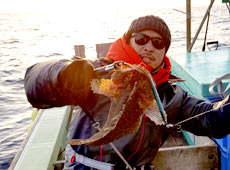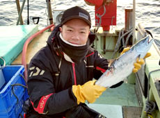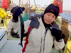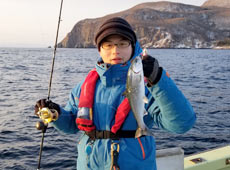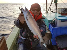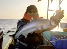 Oさんと同じくオフショアサクラマス初挑戦の齋藤さんも初サクラマスキャッチ! サクラマスの強いファイトに完全にハマってしまった様子。