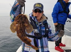 久しぶりのオフショアロックへ行ってきました! 木古内沖40mラインで釣り開始。潮の流れが緩く、喰いが渋い状況の中、中浜さんがアブラコ(アイナメ)をキャッチ!
