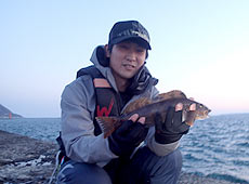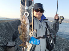 GWで帰省中の成田さんにアイナメがヒット!さらに連発させてのサイズアップ!久々の沖堤を満喫していました!