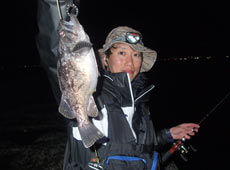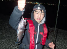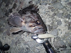 「ようやくクロソイ釣れました」と暗闇から現れた寺岡さん!ほっと一安心!