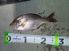 あまり反応は良くないので、レンジを変えて、幅広く探っていくと、ボトム付近でヒット!しかもサイズ良さそう!苦戦しながらもギリギリまでドラグを締め、なんとか浮かせて来たのは25cmオーバーのクロソイ! ライトタックルでのこのサイズは超楽しい〜♪