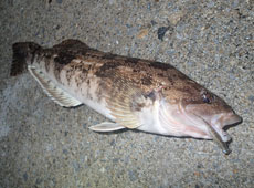 次に訪れた漁港ではシンキングタイプのフロートリグに0.6gジグヘッド+ケイテック・シャッドインパクト2インチで軽いジグヘッドを遠投する作戦!沈みテトラの上をかすめるようにリトリーブしてくるとヒットしたのはアブラコ(アイナメ)!