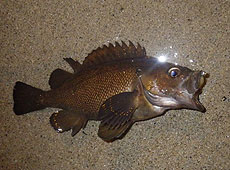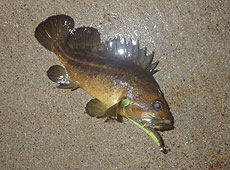 ボトム付近をスローに探るとさっそくヒットしたのは本命のガヤ(エゾメバル)!