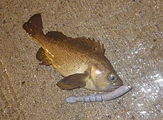 しかし、小型のガヤ(エゾメバル)の猛攻にあい、ワームサイズを4インチにアップ。サイズアップを試みると、狙いが上手くいったのか!?少しだけサイズアップ!