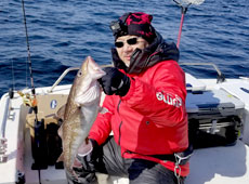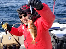 その後、後が続かずサクラマスの反応が無い状況。そこで気分転換にウスメバルに狙いを変更。 しかし、この日は何をやっても厳しいのか反応がほとんど無い状況。 そんな中、川島さんにヒット!ロッドが大きく曲がります!浮いてきた正体はマダラ!