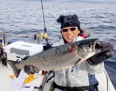 前回オフショアのサクラマスにどっぷりとハマってしまった黒田さんもキャッチ!その後もコンスタントにヒットし、サクラマスのファイトを満喫。