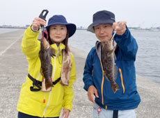 いつも沖堤釣行に参加してくださる杉本さんと富樫さん。二人仲良くアブラコ(アイナメ)をダブルヒット!その後も二人ともにコンスタントにヒットを重ねていました!