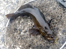 しかし、その後は魚の活性が低く苦戦。私も色々と試していると、ヘチ際のフォールパターンでアブラコ(アイナメ)キャッチ!