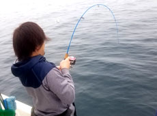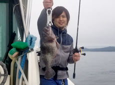 ファーストヒットは佐藤さん!ナイスサイズのアブラコ(アイナメ)をキャッチ! その後、40アップのマゾイもゲット!
