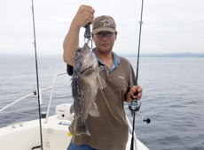 そして終了間際に野村さんがヒットしたのは、なかなかレアなイシナギの幼魚! 幼魚と言っても50cmを越えるサイズ!珍しい釣果に大興奮でこの日は終了となりました。