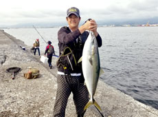 続いてヒットしたのは横山さん!ブリのファイトに腕がパンパンになりながらも、頑張ります無事キャッチ!3.7kgのワラササイズのブリキャッチ!