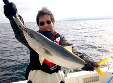 梅村さんも同サイズのブリをキャッチ! その後、良型ヒラメもゲット!