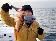 ホッケも多く、ボトムに届く前にヒットしてしまい苦戦。 そんな状況の中、杉本さんがなかなか見ることができない一度に3匹同時ヒットの快挙(笑)
