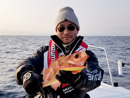 風も弱く久しぶりの穏やかな天候! ウスメバルをジギングで狙います。 魚の活性が高く、開始からコンスタントにヒット! 型も30cmを超えるサイズも多い状況。