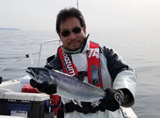 魚の反応が悪く、ホッケすらもおとなしい状況。 そんな中、加藤さんが本命のサクラマスキャッチ!