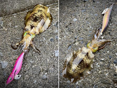 アオリイカを探して道南一帯を西へ!東へ!タケルさんから釣果写真が届きました。 今年は去年の同時期に比べてサイズが小さめで苦戦していたそうですが、ようやく3号のエギをガッチリ抱いてくれるようなサイズが釣れたとのでした。