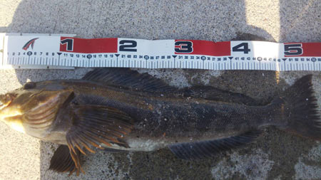 Bマサさんから自己記録更新サイズのアブラコ(アイナメ)が釣れた!と写真が届きました!太平洋方面の漁港で朝マズメのアブラコ(アイナメ)狙いでのヒット!ヒットワームはエコギア・バグアンツ2インチだったそうです。