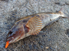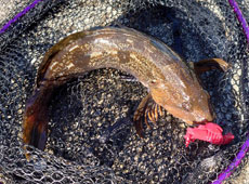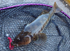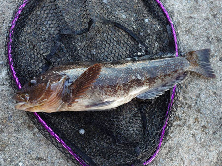 お二人でアブラコ(アイナメ)5本の釣果!しかも奥様には50pの大型がヒット!「またしても嫁にやられた!」と安藤さんは苦笑い(;^_^A