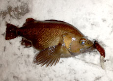 続いてスモールラバージグにチェンジ。 スローに敷石の周辺を探ると、少しサイズアップの20cmほどのガヤがコンスタントにヒット!