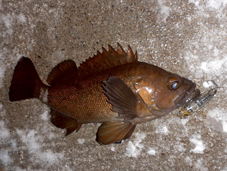 ポイントに到着すると、他のアングラーの姿は無く、貸し切り状態。 さっそくライトジグヘッドにストレートワームの組み合わせで釣り開始。