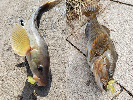 アブラコ(アイナメ)狙いで函館港へ!最初の場所はホッケの猛攻!アブラコ(アイナメ)の反応はなくホッケが3匹釣れたところで場所を移動。